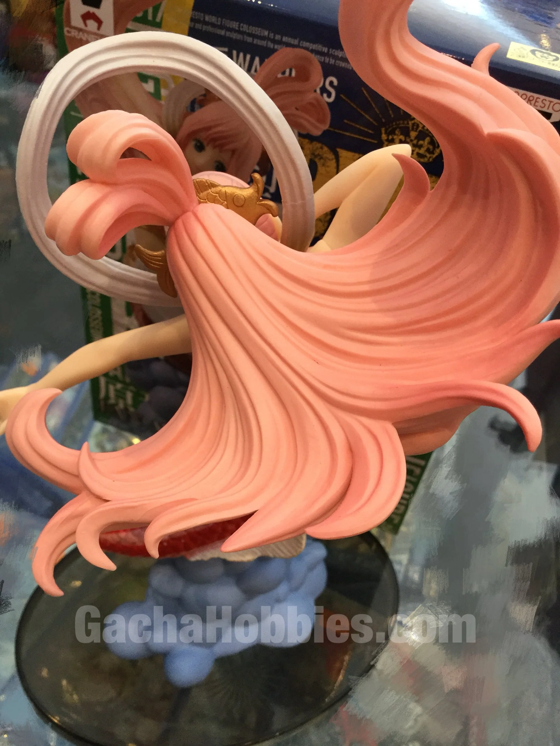 From Banpresto. The highly praised Banpresto World Figure Colosseum is a tournament of artists who go head to head in design battle in a contest to be crowned as the champion! Carefully selected top modeling artists from around the world are invited to submit their designs that are voted upon by fans and judges. Hailing from Brazil, art teacher, and figure sculptor Bruno Moss offer his take on the unforgettable giant sized mermaid royalty, Princess Shirahoshi, from the popular One Piece anime series. Looking to offer a design that appears swimming in mid-air, Mr. Moss created Shirahoshi with very unique floating details from her hair to her tailfins. Standing at seven inches tall, Princess Shirahoshi comes with her own figure base. Minor assembly required.Â